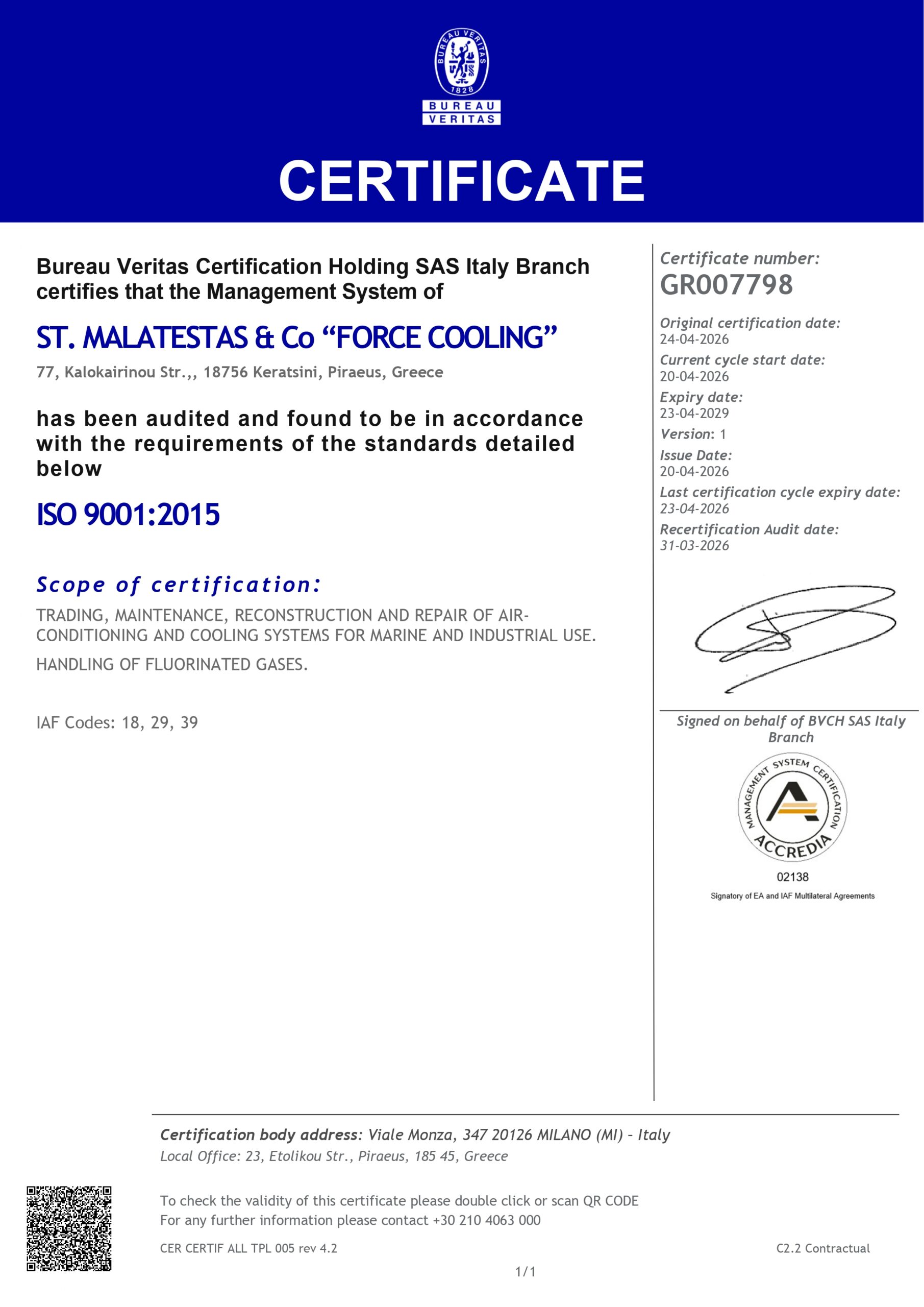 Η Force Cooling συμμορφώνεται με τις σύγχρονες κανονιστικές ρυθμίσεις που προάγουν τη χρήση, όσο το δυνατόν πιο φιλικών προς το περιβάλλον ψυκτικών μέσων. Αυτό εξασφαλίζει ότι οι πελάτες μας έχουν πρόσβαση στις καλύτερες και πιο σύγχρονες λύσεις στην αγορά, ευθυγραμμισμένες με τις βέλτιστες πρακτικές της βιομηχανίας.